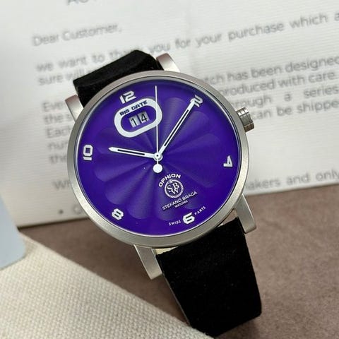 Upea Stefano Braga -miesten kello Ophion-sarjasta. Kello toimii kvartsikoneistolla (Swiss made) ja siinä on myös silmiinpistävä keskitetty kuvio kellotaulussa. Lisäksi siinä on päivämääränäyttö 12:n tunnin kohdalla. Ehdottomasti huomiota herättävä värikkäällä kellotaululla. Selkeä luettavuus kontrastin ansiosta indeksien ja viisareiden välillä.