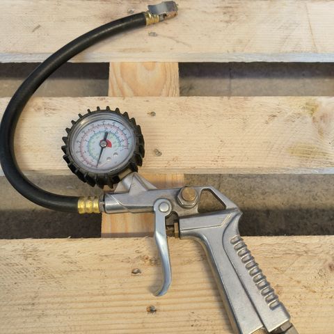 Hyväkuntonen toimiva rengaspyssy renkaitten täyttämiseen. Toimii paineilmalla.