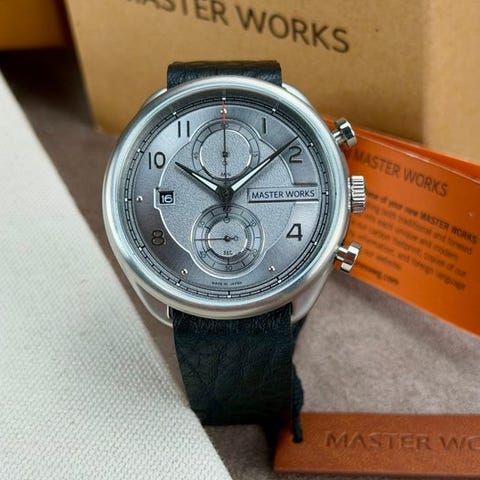 Upea herrasrannekello Master Worksilta. Referenssinumero MW18ROEDDBO0. Kello toimii automaattisella uurrekella, joka on näkyvissä kellon takapuolella. Uurrek näkyy myös osittain etupuolella kello 9:n kohdalla. Kellossa on power reserve -indikaattori kohdassa 12 ja 24 tunnin näyttö kohdassa 6. Lisäksi siinä on näyttävä muotoiltu kotelo.