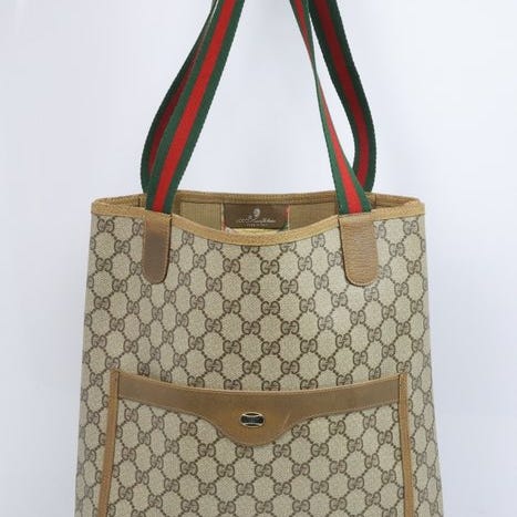 Harvinainen Gucci Vanha Gucci GG Plus Sherry Line -olka- ja clutch-laukku beigestä, mocha-ruskeasta ja kultaisesta metalliosasta.