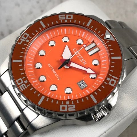 Upea ja laadukas Citizen-kello, referenssinumerolla NH8350-83L. Kello toimii automaattisen koneiston (cal. 8200) avulla ja siinä on päivämääränäyttö kahdella kielellä (englanti/japani) klo 3 kohdalla. Kello on helposti luettavissa sinisen taustan ja vaaleiden korostusten ansiosta.