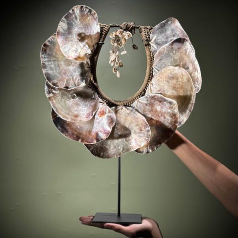 Simpukaketju räätälöidyllä jalustalla Papua-Uudessa-Guineasta.