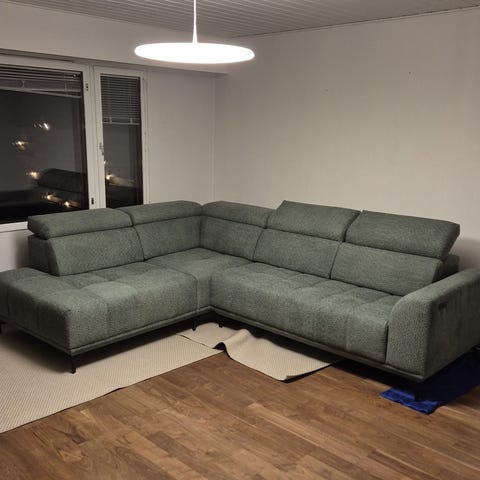 LAZY jättikulmasohva TÄNÄÄN KOTIIN uusi paketissa.Kunnon löhösohva, istuin tyynyt pocket jousilla. Sohvan mitat 297x241cm tai 241x297cm.Tänään kotiin v.harmaana tai t.harmaana hintaan 1375,-