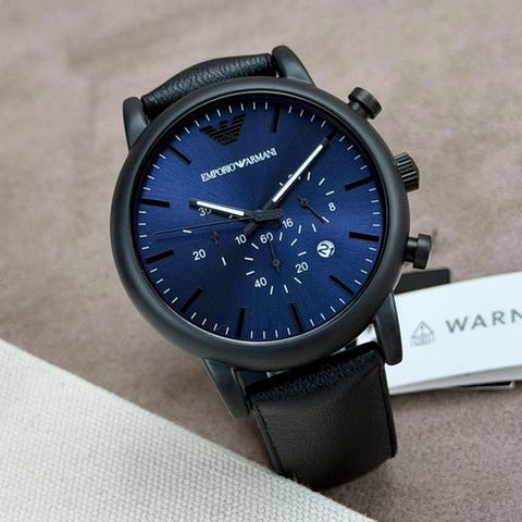 Kaunis miesten Armanin kello, viitenumero AR11470. Urheilullisen näköinen kello. Kvartsikoneistolla varustetussa kellossa on kronografi ja päivämääränäyttö kello 4:n ja 5:n välillä. Kello on helppo lukea silmiinpistävän vihreän taustan ja mustien yksityiskohtien ansiosta. Myös kuori on mustaksi pinnoitettu.