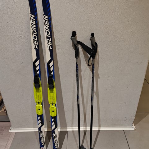 Karhu sukset 120, sauvat ja Salomon monot kokoa 30,5