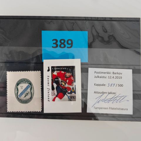 Barkov julkaisupäivä 12.4.2019, postimerkki numero 345/500. Postimerkki liittyy jääkiekkoteemaan ja esittää pelaajan peliasussa. Sopii postimerkkikokoelmiin ja urheiluharrastajille.