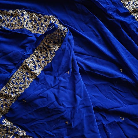 Myydään kaunis aito nepalilainen saree. Mukana tulee punainen yksinkertainen pusero kokoa 36 ja beige alushame. Halutessaan myös ranne- ja kaulakorut saa kaupan päälle.