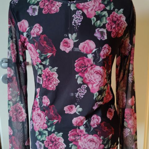 Kaunis t-paita kukkakuviolla.