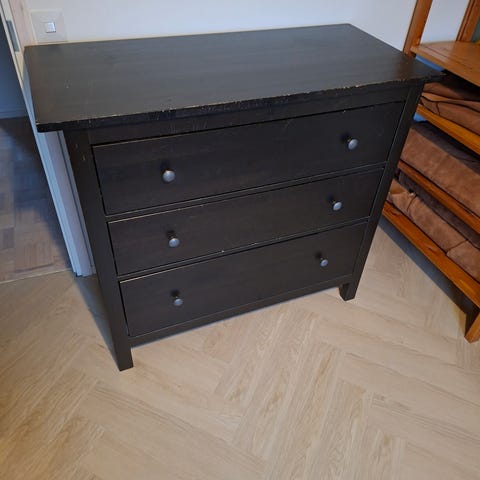 Myydään ruskea Ikean Hemnes-lipasto messinkityylisillä vetimillä. Siistissä kunnossa muutamaa päällyslevyn naarmua lukuunottamatta. Nouto viimeistään 30.12.