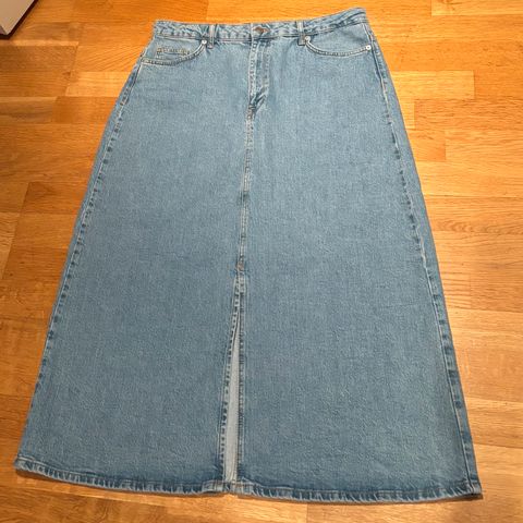 Suomalaisen Very Nicen farkkuhame (malli Elle), koko XL. Käytetty vain pari kertaa. Ihanan pehmeä materiaali: pääosin puuvillaa, ja mukana ripaus kashmiria! Ks kuva tuotelapusta. Edessä halkio, taskut edessä ja takana.