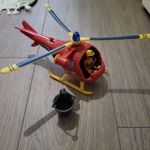 Palomies samin helikopteri ja kuvassa olevat hahmot. Äänet toimii ja lelu ehjät.