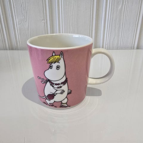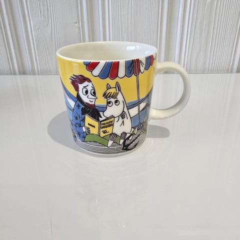 Arabia Muumi muki, väriltään keltainen. Jo tuotannosta poistunut niiskuneiti. Ehjä.