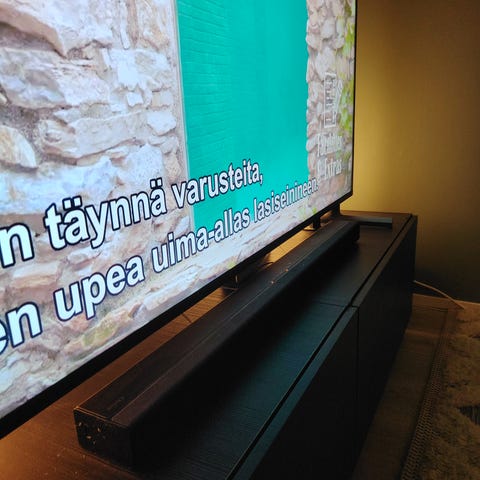 Erittäin siisti ja vähän käytetty. Teho 300W. Liitännät bluetooth ja optinen. Kaukosäädin mukaan. Nouto Kuopiosta Inkilänmäeltä.