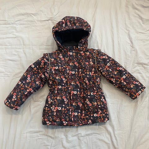 Hyväkuntoinen toppatakki. Yhdellä lapsella ollut yhden talven. Lumilukot hihoissa ja helmassa. Nouto saaristokaupungista nopeimmalle. Mmm