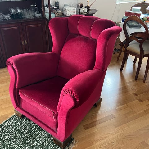Hyvässä kunnossa oleva laiskanlinna, jossa mukava istua, puhdas, tahraton, ei kotieläimiä perheessä. On uudelleen irtoverhoiltu (n. 8 vuotta sitten). Hieman kulumaa verhoilussa, kuten kuvasta voi nähdä. Vain nouto.