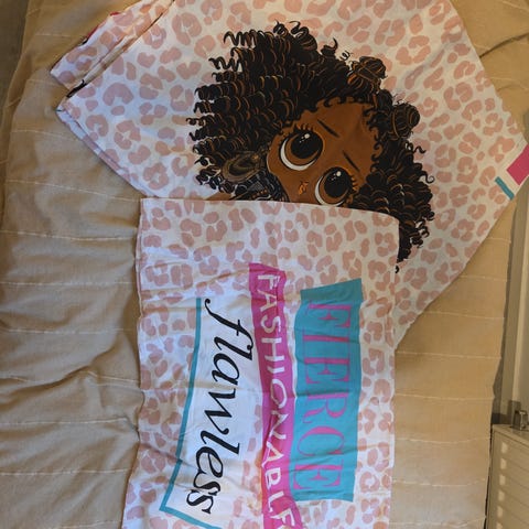 Fairy tale. Molemmissa tyynyliinat 50x60 cm. Toisessa koira, toisessa jääkarhu.