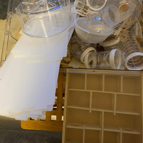 Myydään pakettina kuvassa näkyvät tarvikkeet hamsterille. Juoksupyörän halkaisija n. 28cm.