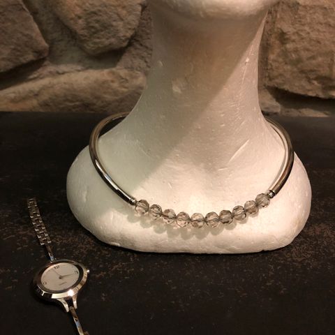 Korusetti sisältäen metallisen rannekellon, ketju- ja helmirannekorut, sekä useita hiusklipsejä. Kellon ja korujen materiaalina metalli, väritykseltään hopean, kullan ja pronssin sävyisiä elementtejä. Kellot toimi erittäin hyvin