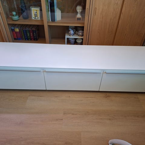 2 lasiovea, 3 laatikkoa, väri kirsikka/sininen