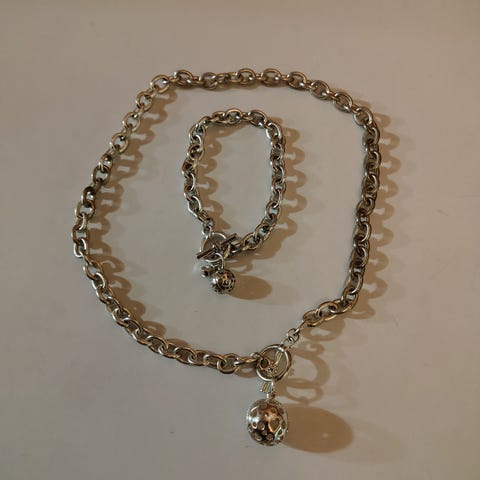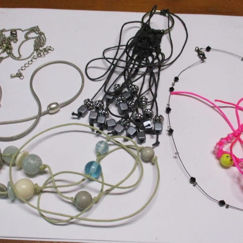 Kaulakoru vain laput poistettu mutta ei tullutkaan käyttöön 3e, rannekorut pari krt käytetty 2e ja korvakorut uudet 7e (itsellä toiset samanlaiset jo ennestään). Koko setti 11e.