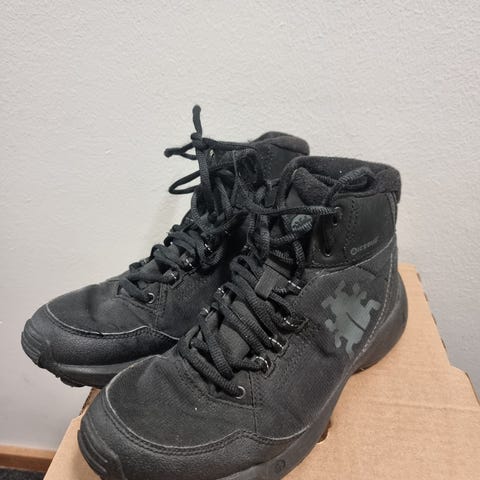 Korkeavartiset Icebug nastakengät. Kokolapun mukaan koko 38, mutta tuntuvat hieman pienemmiltä. Kengissä on muhkean paksu ja lämmin vuori. Kengät ovat myös vedenpitävät. Vetoketju jalan sisäsyrjällä helpottaa pukemista. Nastat kaikki tallella pohjissa. Sisäpohjalliset siistit ja niistäkin näkee, että kenkiä ei juuri ole pidetty.