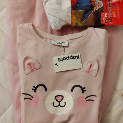 Frillahihainen mekko tosi tummansininen, musta takki ja sukkahousut Kappahl.