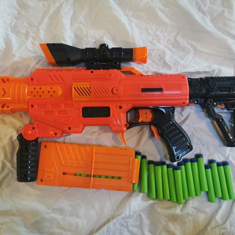 Moottoroitu automaattinen vaahtomuoviammusase ampuu 20 krt alle 20 Sekunnissa. Toimii 6xAA paristo.