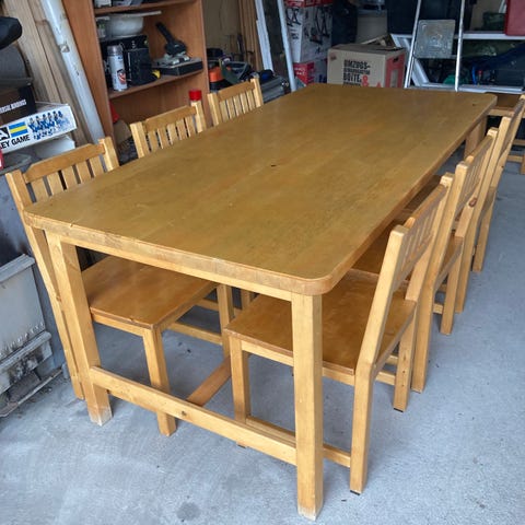 Ostetaan puinen ruokailuryhmä, jossa 4 tuolia. Leveys vähintään 76cm, mutta pituus ei ole niin tarkkaa. Väri valkoinen/vaalea.