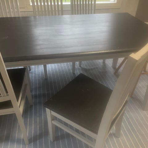 Pöytä yksittäin 50€ ja tuolit 15€/kpl. Settinä 100€.