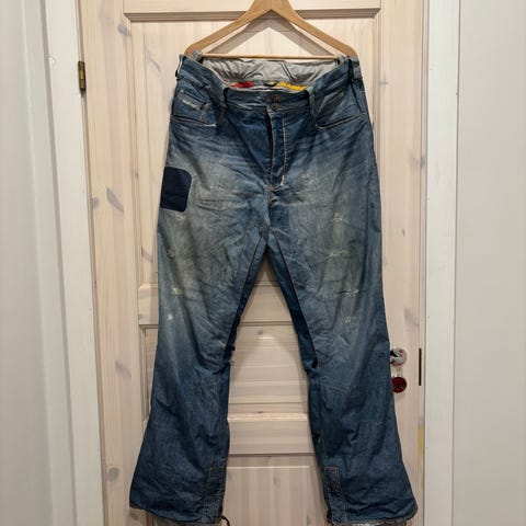 Muuten hyväkuntoiset mutta toisessa lahjessa polven kohdalla mustaa jälkiä ja takana lahjessa viiltoja