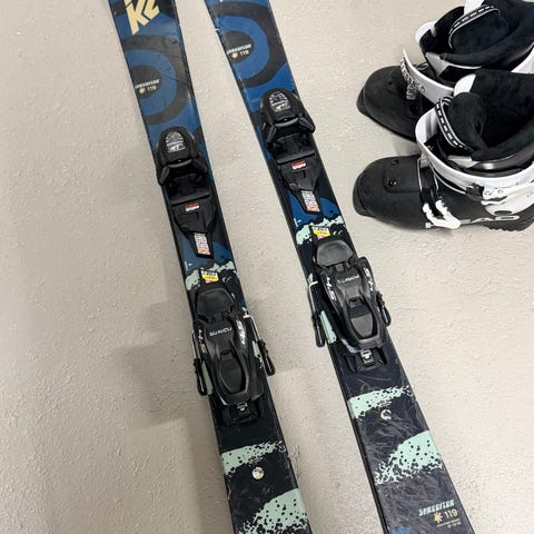 K2:n Shreditor JR on monipuolinen twintip-suksi rinne- ja parkkilaskuun. Pituus 129 cm. Suositeltu pituus on hieman lyhyempi kuin laskijan pituus. Sukset ovat olleet käytössä yhdellä lapsella. Ehjät ja hyvät sukset seuraavalle laskijalle, vaikka toki käytön jälkiä on.