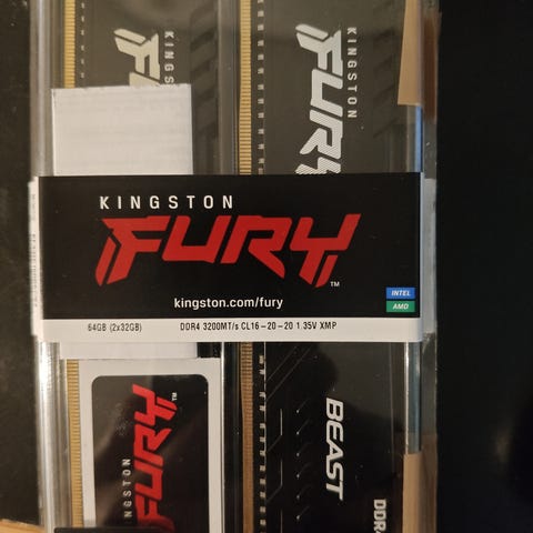 Kingston Fury DDR4 RAM -muistimoduulit, yhteensä 32GB (2x16GB).