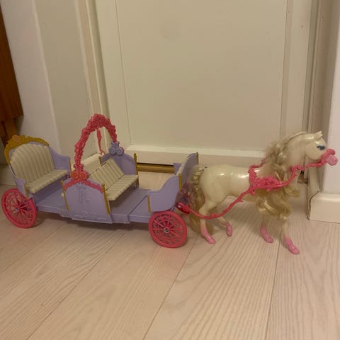 Barbie Dreamtopia Sweetwille -setti, johon kuuluu hevonen/yksisarvinen, hevosvaunut ja Barbie. Hevosvaunun pyörät pyörivät, eli niillä voi oikeasti vetää. Erittäin hyväkuntoinen. Hajusteeton, eläimetön ja savuton koti. Nouto Aurinkolahdesta tai postikulut ostajalle.