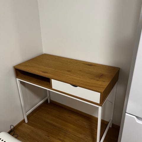 Myydään pienemmän pöydän tieltä pois. Kunto hyvä, pieniä kolhuja/kulumaa löytyy mutta ehjä.