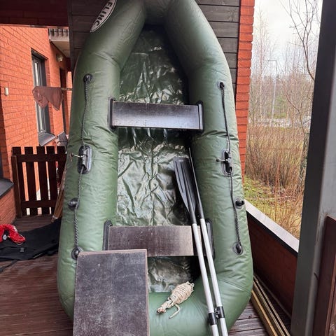 Jäänyt lojumaan katokseen vähäisen käytön takia, ollut metsästys/kalastus käytössä. Käytön jälkiä mutta muuten toimiva. Kokonaan alumiinia.