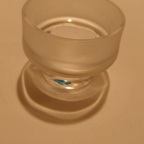 Kirkas ilman telinettä pöydällä pidettävä, korkeus 6,2cm ja halkaisija 7,5cm,