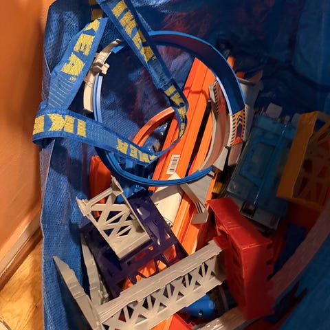 Hot Wheels Track Builder Unlimited Triple Loop Kit -autorata joka täysin toimiva. Hauskoja leikkejä muutamalla eri tavalla.