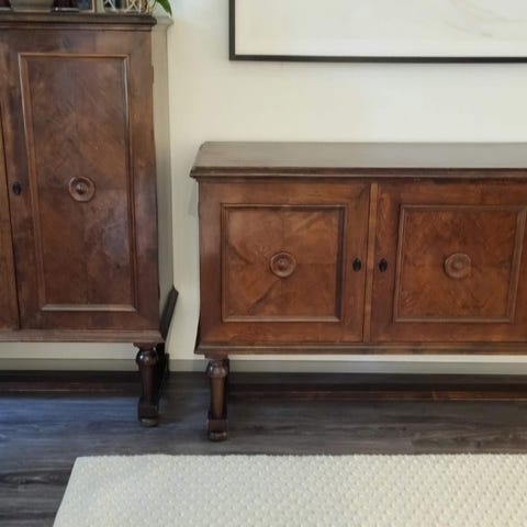 Vanha tummanruskea kaappi.
