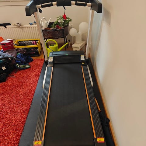 Pieniä taitoksia löytyy juoksumatossa. Juoksumaton voiteluainetta käytetty viimeksi pari viikkoa sitten.