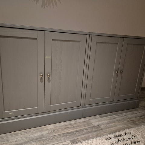 Myydään Ikean Ivar kokonaisuus, jossa mm. kaksi kaapistoa, 9kpl kapeaa hyllylevyä, 1kpl leveä hyllylevy ja 4kpl muovista laatikkoa. Yhden kaapin oven pielestä pala puuta irronnut, joten vaatii hiomista halutessaan. Hyllylevyillä likaa ja tummentumaa hieman, mutta yleisilmeeltään siisti. Käsittelemätöntä massiivimäntyä. Voi purkaa ja yhdistellä erilaisiin Ikean Ivar tuoteperheen osiin. Mitat otettu kuvan kokonaisuudesta kasattuna.