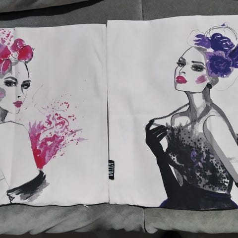 Vallilan kaksi uudenveroista koristetyynynpäällistä. Kuosi "Kerttu" design Eveliina Netti. Vetoketjut ehjät ja toimivat. Koko 40 cm*40 cm. Yhteishinta.