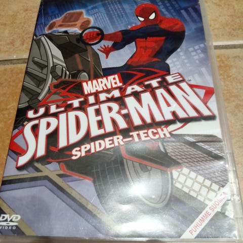 Marvel Ultimate Spider-Man Spider-Tech DVD. Sisältää animaatiosarjan jaksoja, joissa päähenkilö käyttää Spider-Tech-varusteita. Julkaisu sisältää suomenkielisen tekstityksen. Käytetty levy. Näkyy kuitenkin erinomaisesti