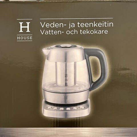 Myydään House-merkkinen veden- ja teenkeitin irrotettavalla teesuodattimella.