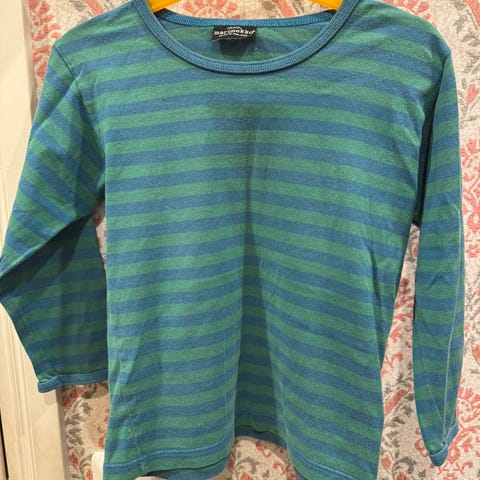 Pesussa haalistunut vähän. Edessä toinen nappi irronnut, mutta varanappi on tallessa pesuohjelapussa paidan sisällä.