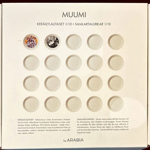 Myydään Arabia Muumi keräilylautaset 2/10 (Vihreä sarjakuva ja Joulutervehdys).