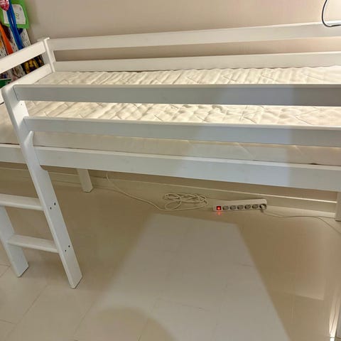 Veke Nukkumatti Parvisänky 80x200cm. Portaissa vähän kulumaa. Pari reikää porattu sängyn alle, joilla kiinnitetty seinään (kuvassa). Lisälaita mukaan.