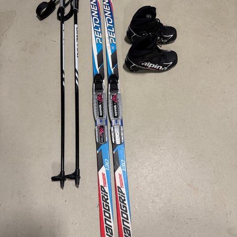 Siistikuntoinen lasten pitopohja - suksipaketti 130 cm perinteiseen murtomaahiihtoon.