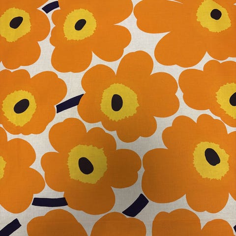 30€/metri. Marimekko Pieni Unikko Salvian vihreä. Kameran kuvassa väri taittaa harmaaseen, tokassa kuvassa malli väristä.