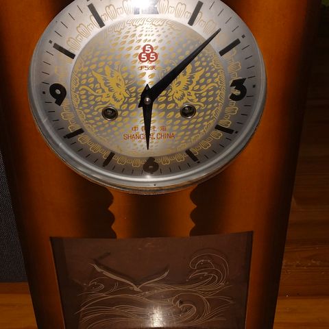 Myydään kaunis vedettävä vintage seinäkello puukotelolla.