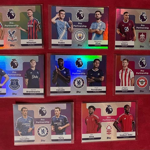Topps Premier League 2025/26 -inserttejä 0,30€/kpl.